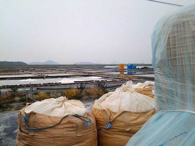 Originally salt production on Jeungdo was instated to boost the local economy after the Korean War. Sun-dried salt is known for being very clean, and as many Koreans told me, much tastier than the cheap stuff from China. It's made by evaporating sea water with wind and sunshine until the salt crystallizes. It's then pushed into a pyramid with the tool you see above and then extracted to.. ya know.. be sold and consumed.